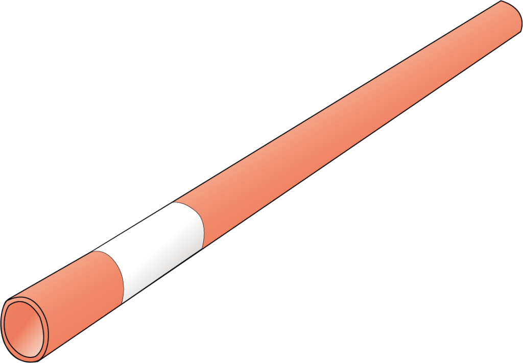 Fabricado por extrusión con PVC y colorante naranja fluorescente, equipado con una banda adhesiva reflectante colocada a un extremo.